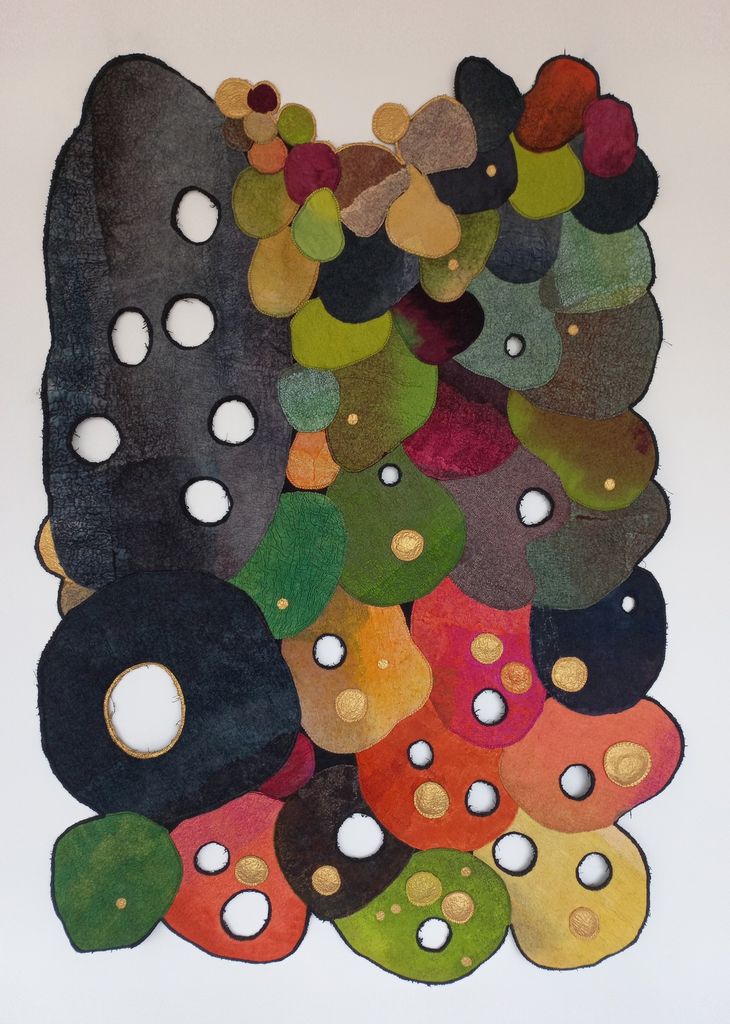 De weidsheid rondom haar geeft haar de ruimte, de vrijheid, om volop te experimenteren met de materialen waarvan zij houdt. Ze werkt met textiel, acryl, en overige ingrediënten om al naaiend, viltend, printend, vindend en vormend tot haar werken te komen. Op 12 en 19 juli, om 14.00 en 15.30u. vertelt Truus enkele malen over haar belevingen op haar eigen stukje grûn en de ‘plaag’dieren waarmee zij hier te maken heeft, zoals bijvoorbeeld de mier en de mol.